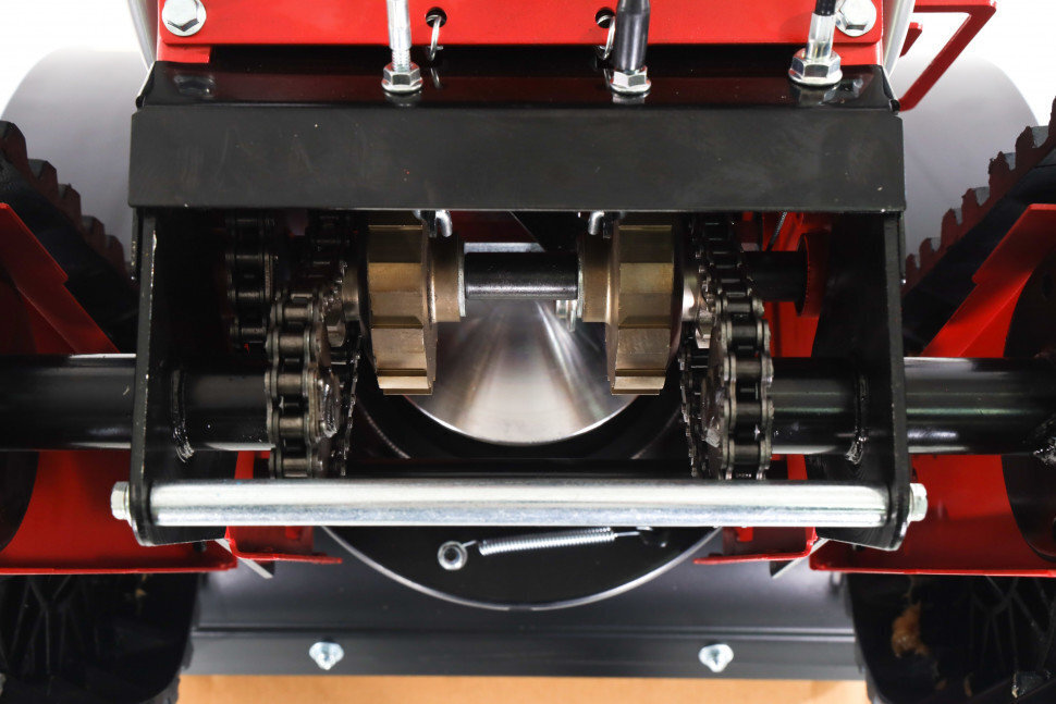 В зависимости от консистенции снега, он может отбрасываться на расстояние до 15 м при помощи вращающегося выбрасывающего канала. Это никак не влияет на привод колес, поэтому снегоочиститель сможет постоянно двигаться вперед, непрерывно убирая снег.