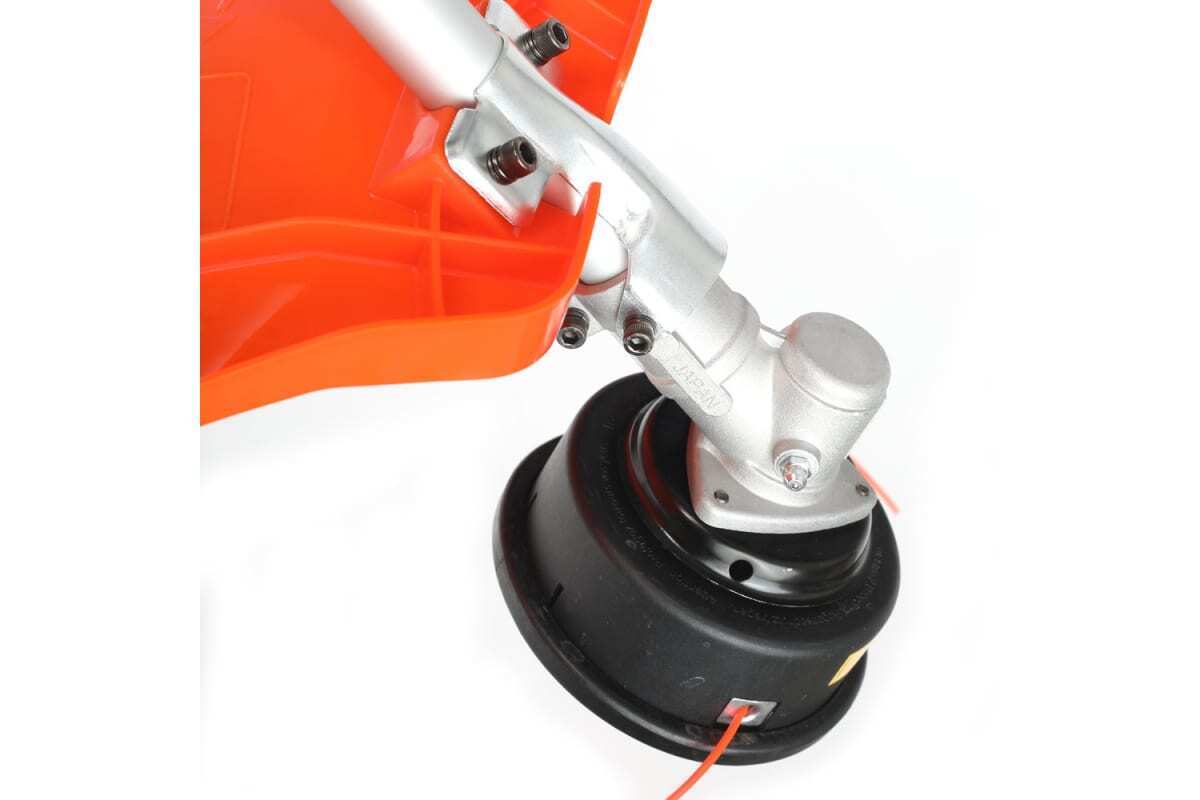 Комплектация - Двигатель в сборе с рукояткой управления, Трансмиссионный узел (вал) в сборе, Рукоятка (левая часть), Плечевой ремень, Защитный кожух с крепежной планкой, Триммерная катушка, 3-х лопастной металлический нож, ЗИП комплект для установки триммерного ножа, Канистра для приготовления топливной смеси, Инструкция по эксплуатации, Набор крепежа и инструментов для сборки/обслуживания, Упаковка.