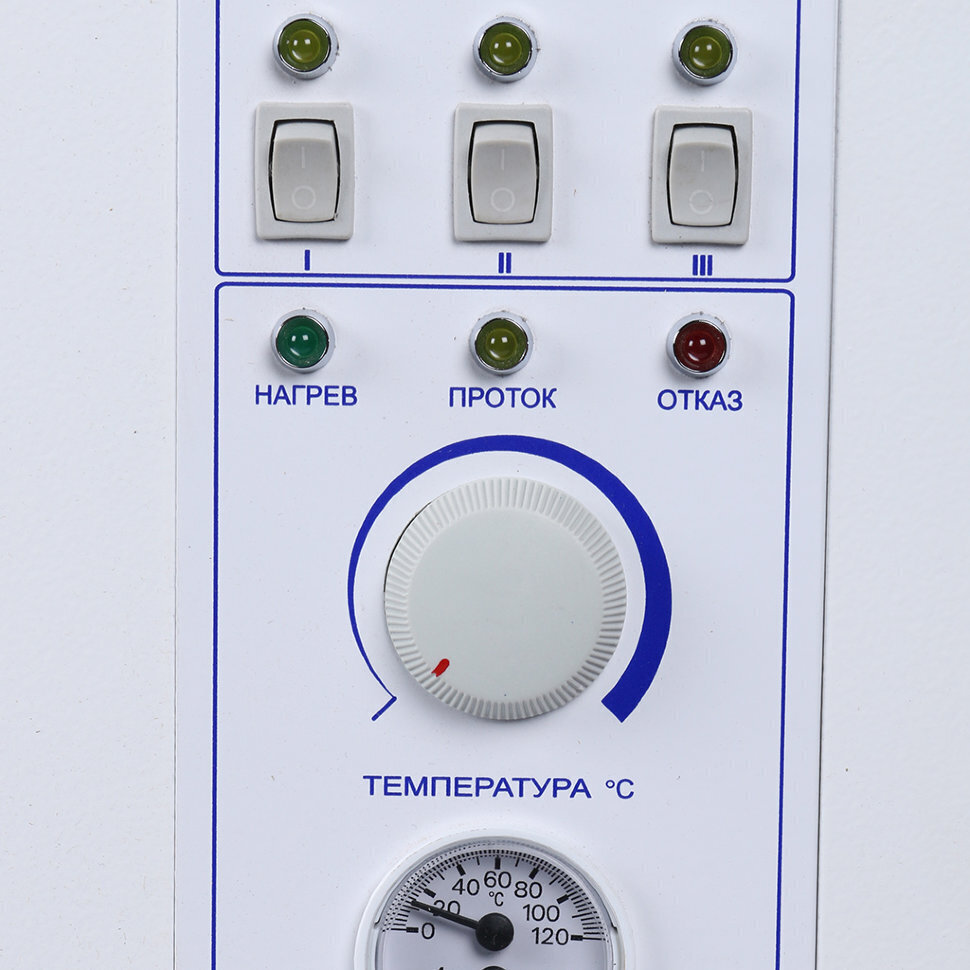 - самовозвратная аварийная блокировка контроля температурного режима, не позволяющая температуре теплоносителя превысить 92±3 °С, а при остывании включающая режим нагрева для предохранения системы от размораживания;