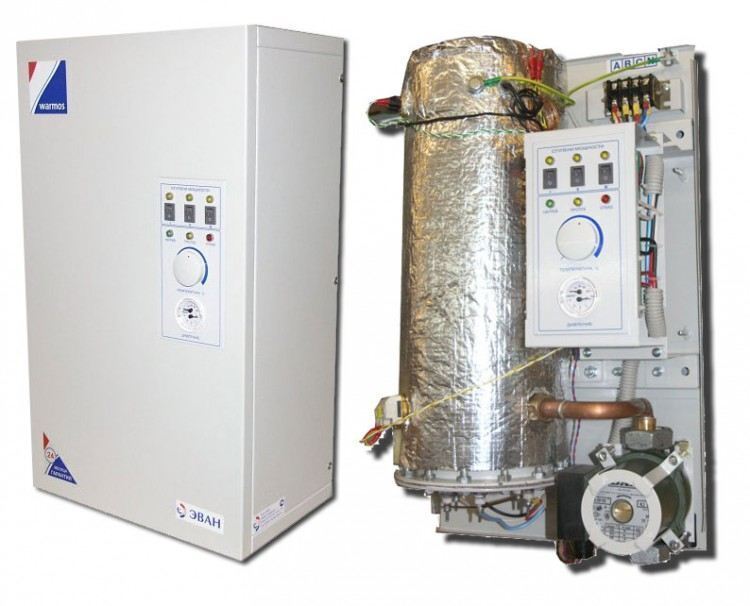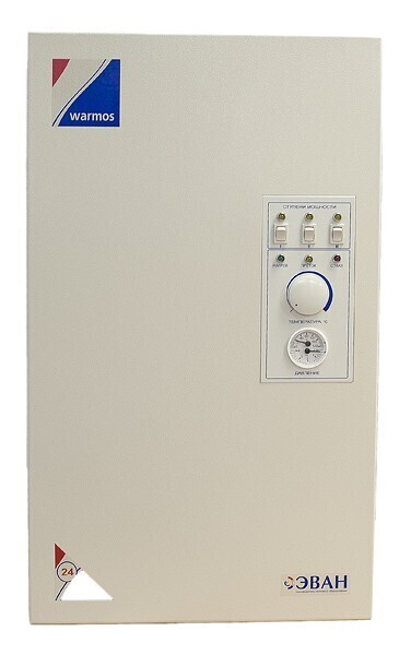 Электрический настенный котел ЭВАН Warmos-M 15 оснащен колодкой для электрического подключения циркулярного насоса, манометром, датчиком минимального давления (предел срабатывания в 0,8 бар), циркуляционным насосом DAV VA 55/133, реле протока IMIT (нижний пределом срабатывания 7 л/мин). Котел выполнен в современном дизайне, очень прост и невероятно удобен в эксплуатации.