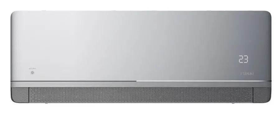 Funai (Фунаи) Kagami RAC-I-KM30HP.D01 – это инверторный бытовой кондиционер, имеющий элегантную серую расцветку, эргономичную конструкцию и отличные технические характеристики. Модель оборудована модулем Wi-Fi для удаленного управления, жалюзи особой формы и четырьмя фильтрами очистки воздуха.