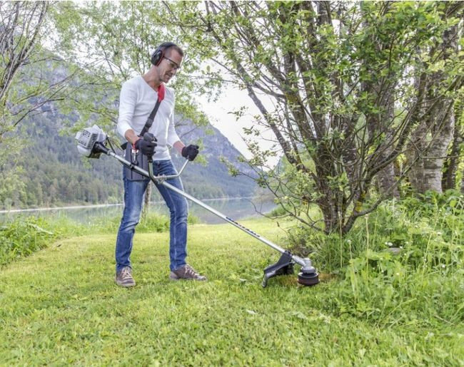 | Ширина скашивания (см) | 41 см леской/25 см ножом |
