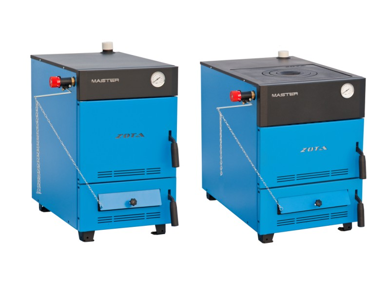 - Модели «Master» мощности 12, 18, 25, 32 кВт оборудованы чугунной плитой со съемными поверхностями для более удобной загрузки угля и подогрева пищи;