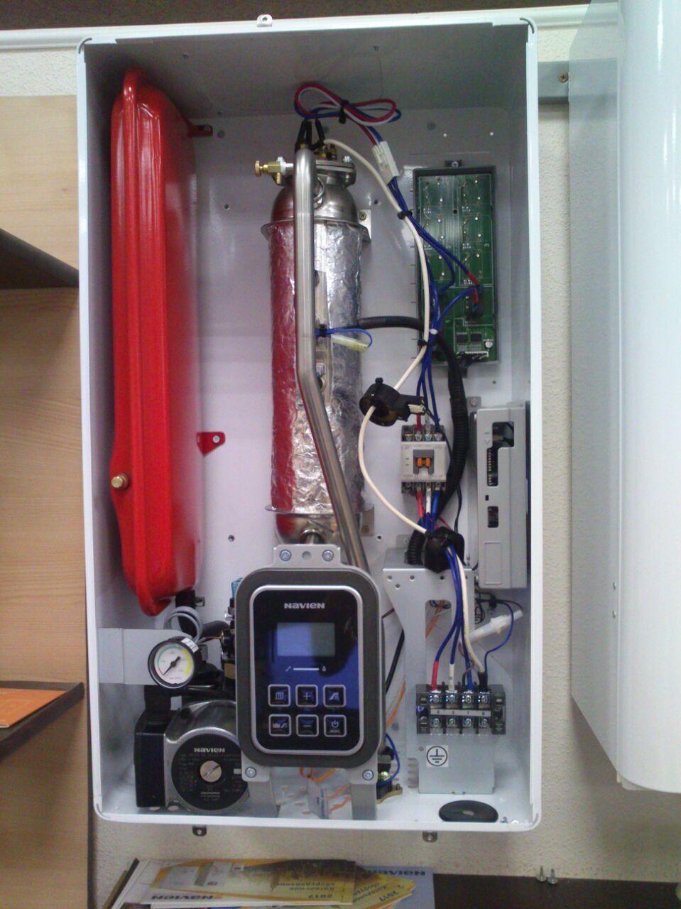 Настенный электрический котел Navien EQB-12HW - считается безопасным в эксплуатации и экологичным оборудованием. Прибор подходит для монтажа в любой части помещения, так как не выделяет в окружающую среду вредных примесей. Агрегат оснащен удобной панелью управления на лицевой части корпуса и укомплектован защитным механизмом от замерзания.