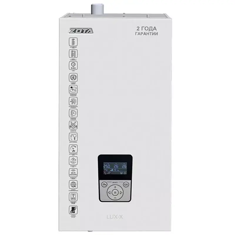 Серия электрокотлов LUX-X от российского бренда Zota представлена изделиями, которые предназначены для обогрева помещений любого типа (жилых, производственных, офисных). Все модели оснащены электронным контроллером X-Line 100E, который значительно упрощает процесс настройки, управления и регулировки отопительной системы.