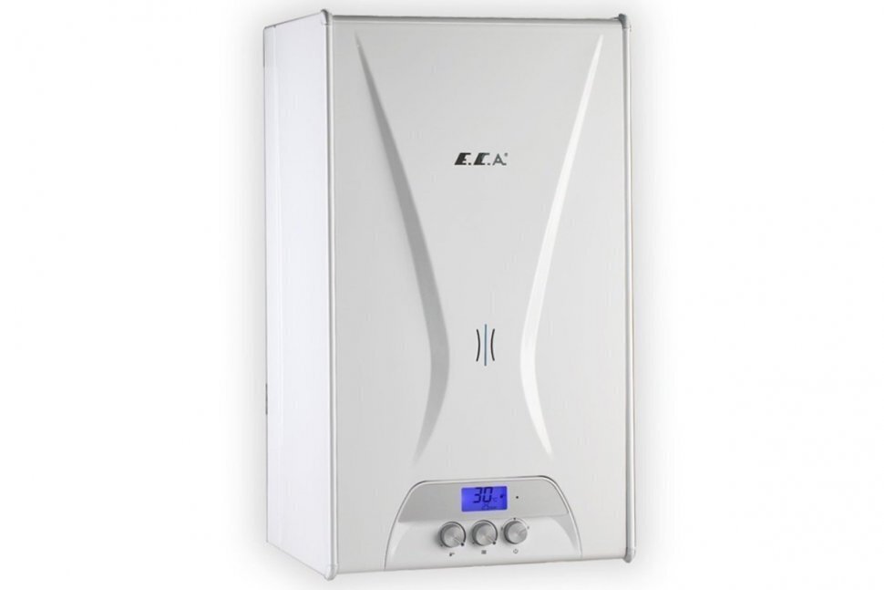 Турбированный газовый котел серии E.C.A Gerda представляет собой высокоэффективное оборудование, предназначенное для отопления жилых помещений и подачи горячей воды. Преимущественными особенностями котла, являются наличие дисплея, на экране которого отображается вся необходимая информация о работе котла, а также современная система автоматического управления позволяющая осуществить подключение датчика наружной температуры и поддерживающая эффективную работу оборудования в режиме «теплый пол». В качестве достоинств данных котлов выделяются и плавный розжиг, непрерывная электронная автоматическая модуляция интенсивности горения газа, экономичность. Немаловажным фактором является и то, что в случае необходимости, есть возможность перенастроить работу котла с природного на сжиженный газ. Прибор отличается простотой управления и элегантным корпусом белого цвета. Важным достоинством является и то что при использовании E.C.A Gerda отпадает необходимость в установке дополнительного водогрейного оборудования (котел является двухконтурным — отопление/ГВС).