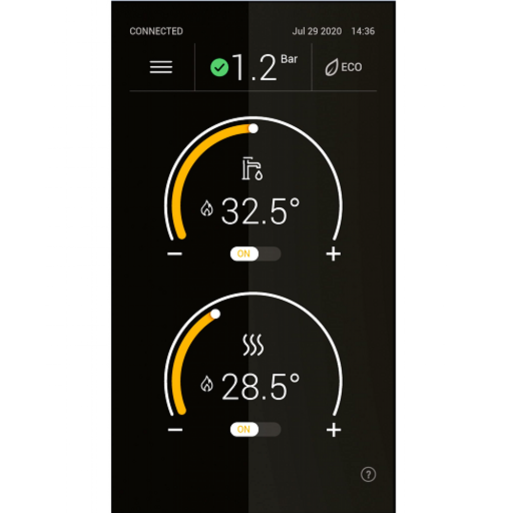 - Возможность управления котлом через интернет (Wi-Fi) при помощи приложения в телефоне для iOS и Android, при помощи беспроводного пульта CONNECT (опция)