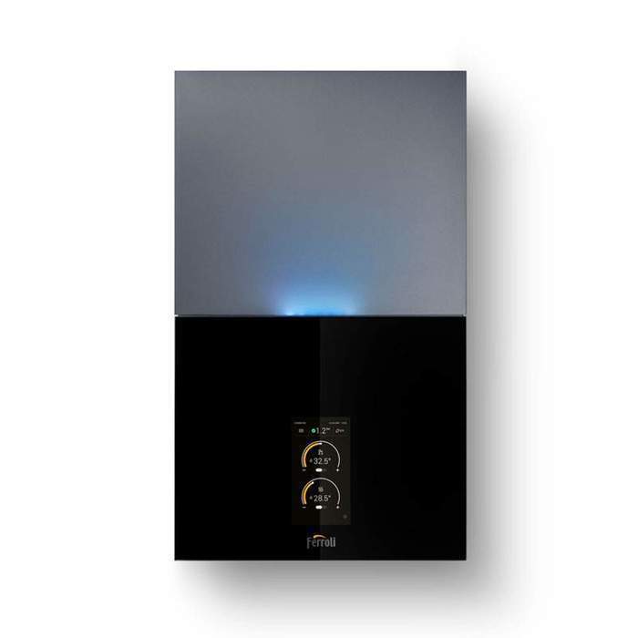 Современный настенный двухконтурный газовый котел от Ferroli BLUEHELIX MAXIMA 28C - очень стильное лаконичное решения для любого современного интерьера квартиры или дома. Передняя панель котла выполнена из стильного черного закаленного небьющегося стекла с мягкой подсветкой.