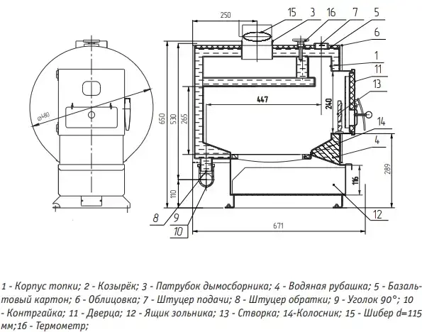 Позволяет использовать дрова до 52 см для модели «Куппер УЮТ-10» и до 64 см — для модели «Куппер УЮТ-20».