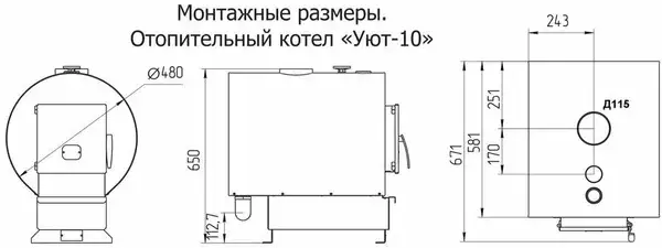 В базовую комплектацию котлов «Куппер УЮТ» входит кочерга, шуровка и термометр, комплект заглушек.
