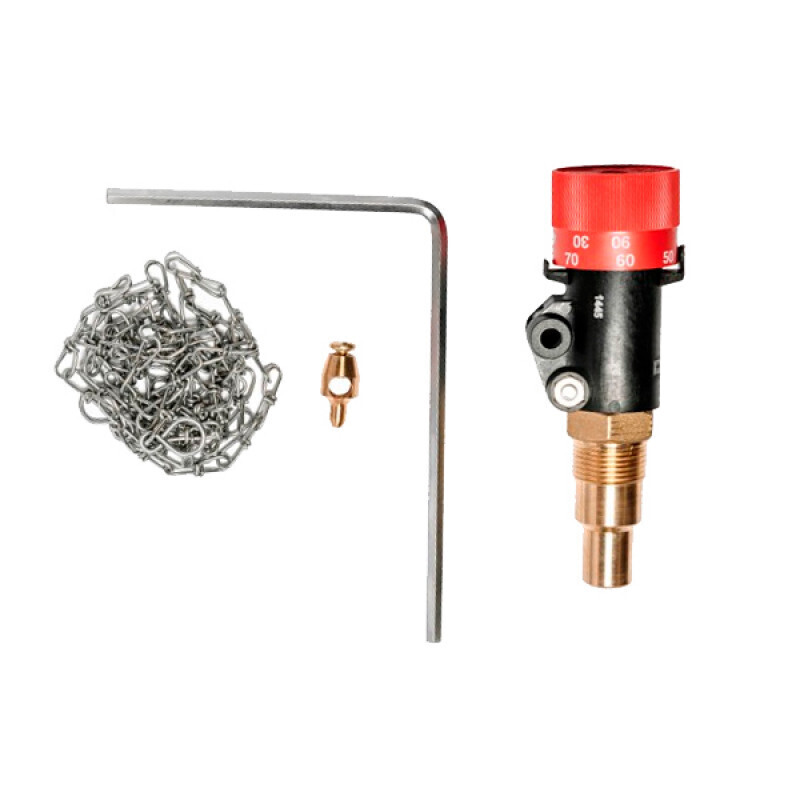 - Выставляем на регуляторе температуру 60 градусов и соединяем рычаг и заслонку цепочкой, так чтобы заслонка была приоткрыта на 1-2 мм.
