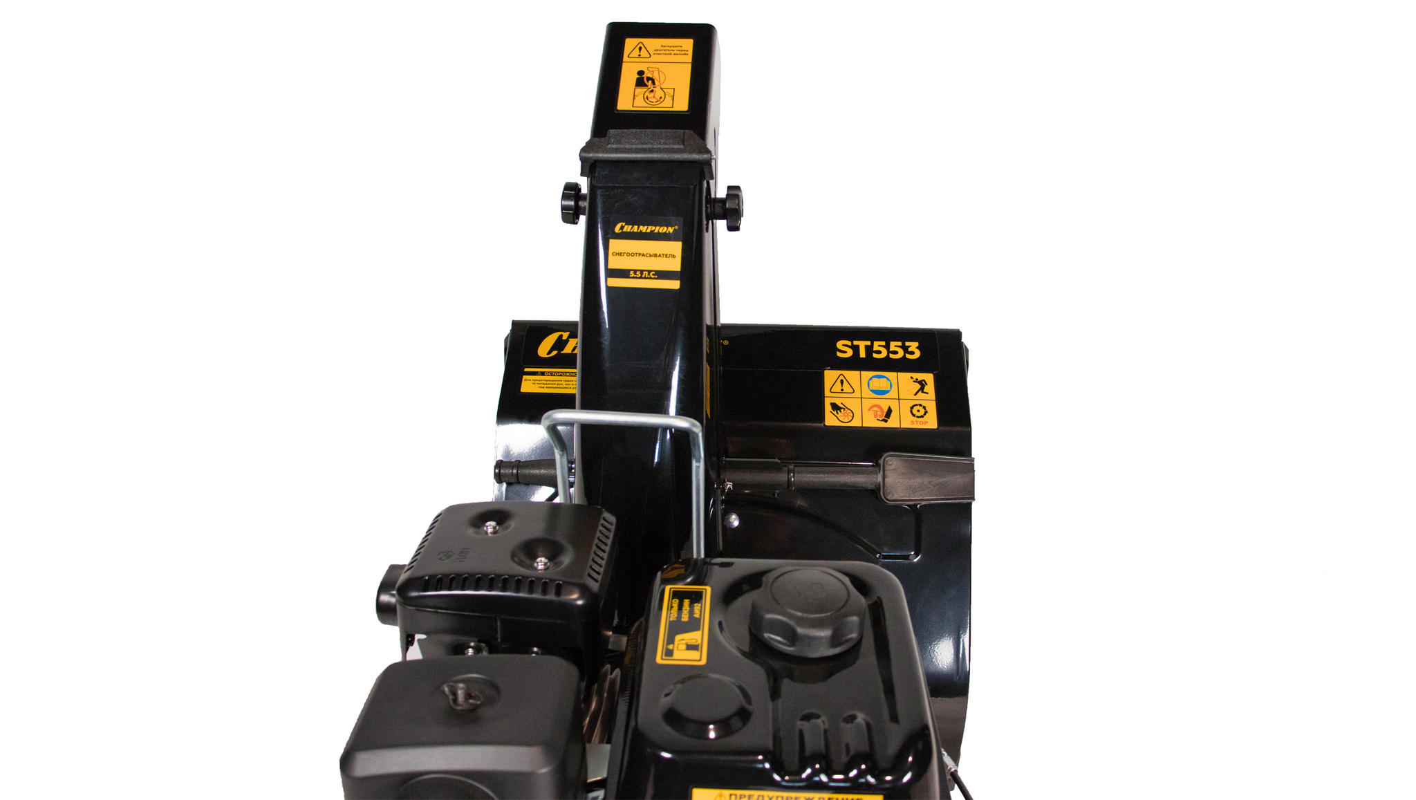 Снегоуборочные машины Champion ST553 – это самоходные колесные агрегаты среднего класса. Двигатель 4-х тактный с верхним расположением клапанов. Мощность двигателя составляет 5.5 л.с. Он оборудован 2 заслонками: дроссельной и воздушной и характеризуется низким уровнем шума. Для легкого запуска и работы в минусовых температурах двигатель специально оснащается системой подкачки топлива. Топливный бак рассчитан на 3,5 л. бензина.