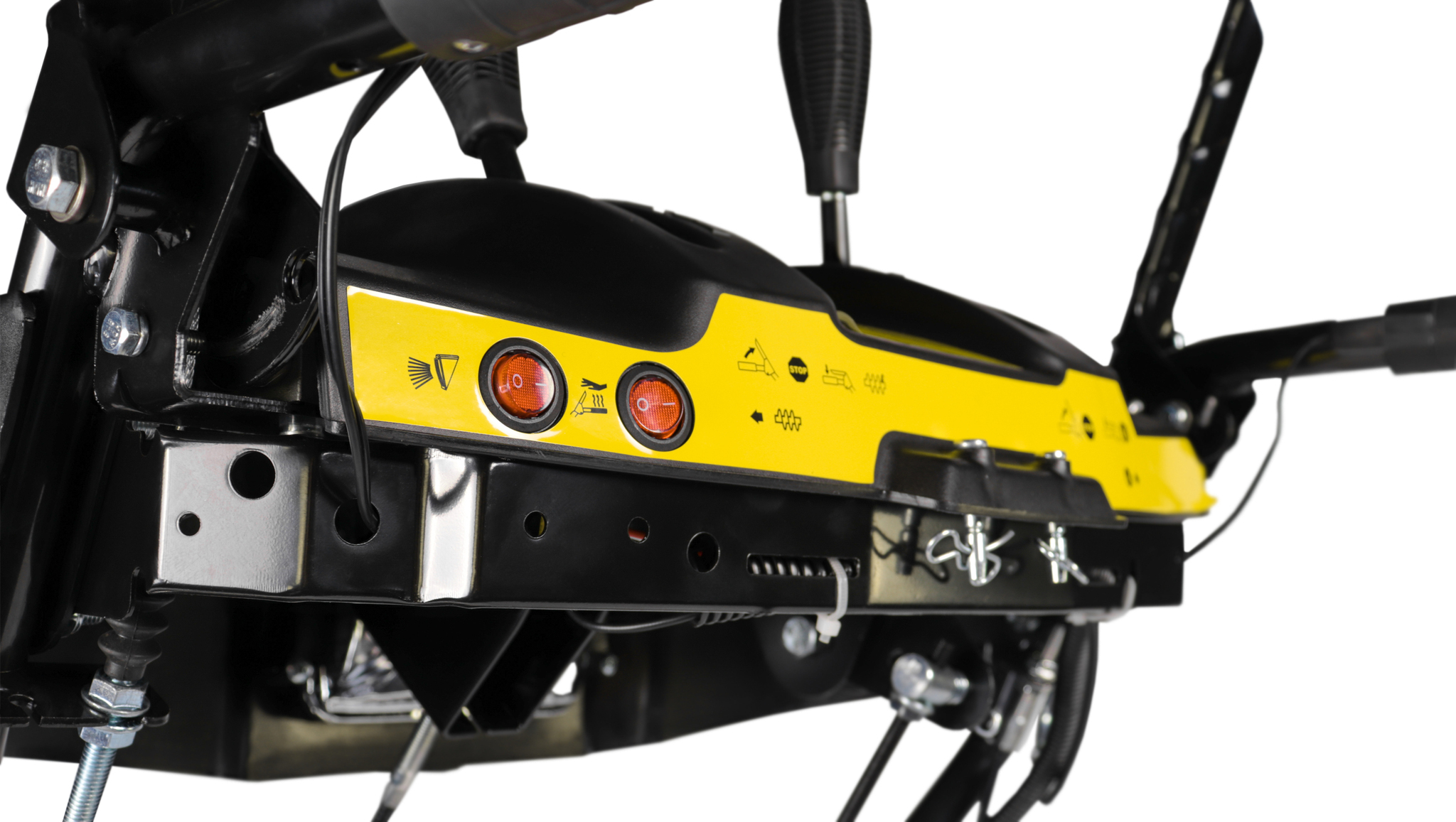 Благодаря предусмотренным скоростным режимам машина удобна для работы на территориях различных размеров. Улучшение маневренности достигается за счет разблокировки дифференциала (шплинтом на колесе), предусмотренной производителем. Регулировка расстояния и направления отброса снега осуществляется оператором вручную.