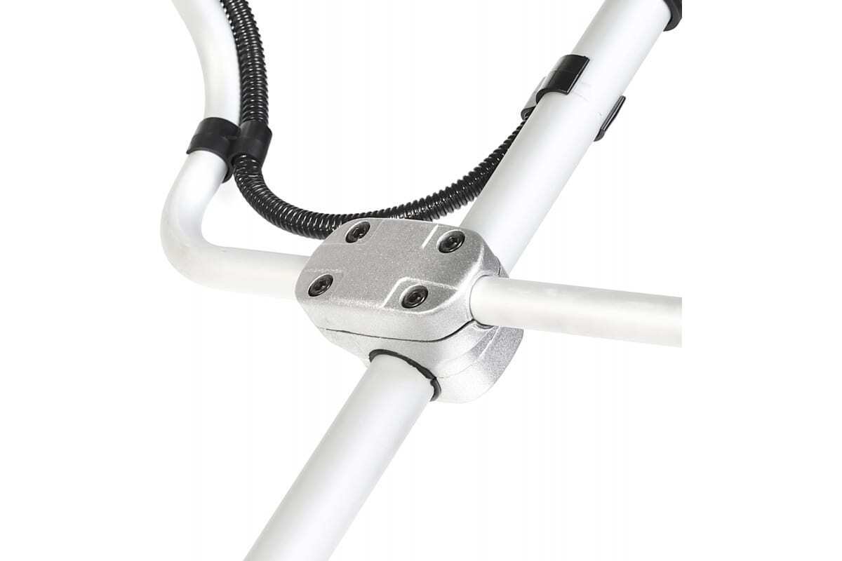 Комплектация - Двигатель в сборе с рукояткой управления, Трансмиссионный узел в сборе, Рукоятка (левая часть), Ранцевый ремень, Защитный кожух с крепежной планкой, Триммерная катушка, 4х-лопастной металлический нож, ЗИП комплект для установки триммерного ножа, Канистра для приготовления топливной смеси, Инструкция по эксплуатации, Соединительное звено рукояток, Набор крепежа и инструментов для сборки, Упаковка.
