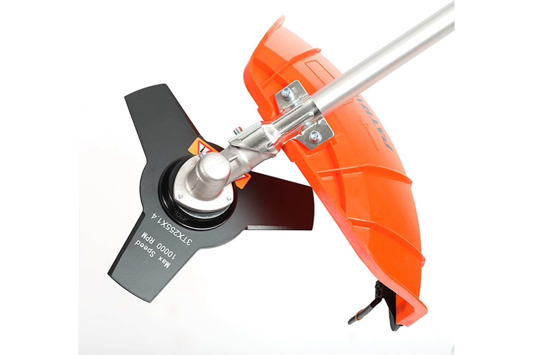 Комплектация - Катушка (3 мм), Нож, Плечевой ремень, Дополнительный пильный диск, Канистра для смешивания топлива
