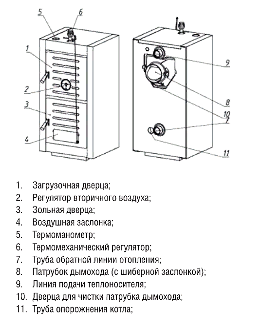 - Возможность использования в качестве топлива дрова, уголь, антрацит, брикеты